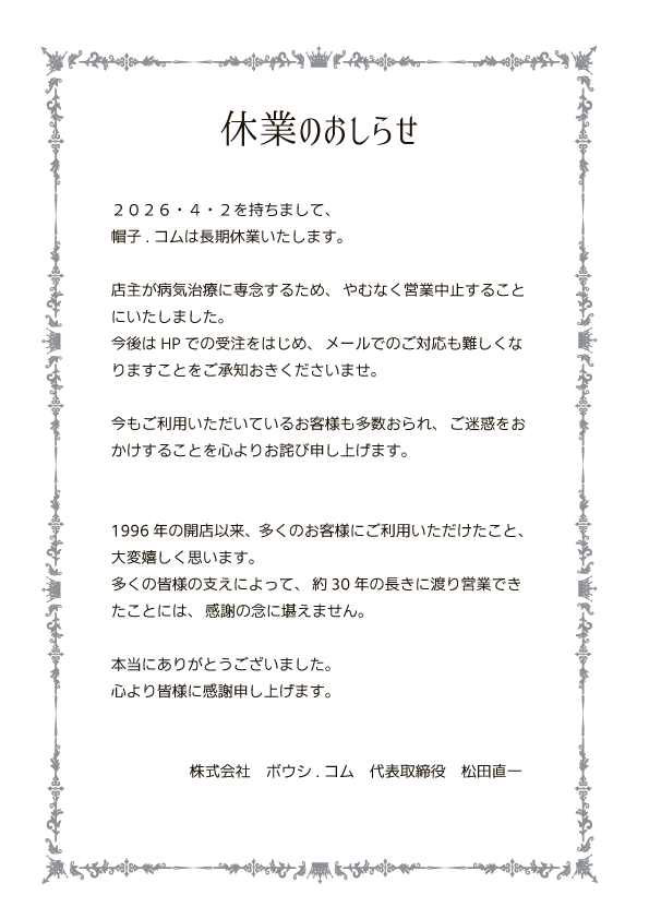 | ボウシ.コムさんは見積もりのメールも親切で本当に気持ち良く、毎回注文させていただいてます。父の名前を数字の語呂にしてポロシャツに刺繍していただき、着心地も良いみたいです。二つと無いものなので、とても気に入ってくれています。 |