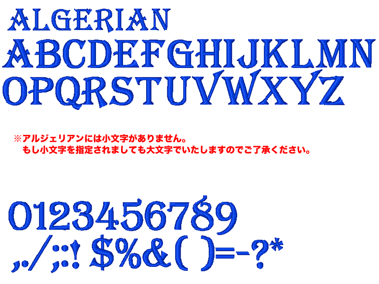 26 ALGERIAN(アルジェリアン) ●英字大文字+数字のみです。 |